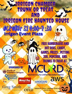 The 2025 Irrigon Trunk or Treat event will be held on Thursday, October 31, 2025…